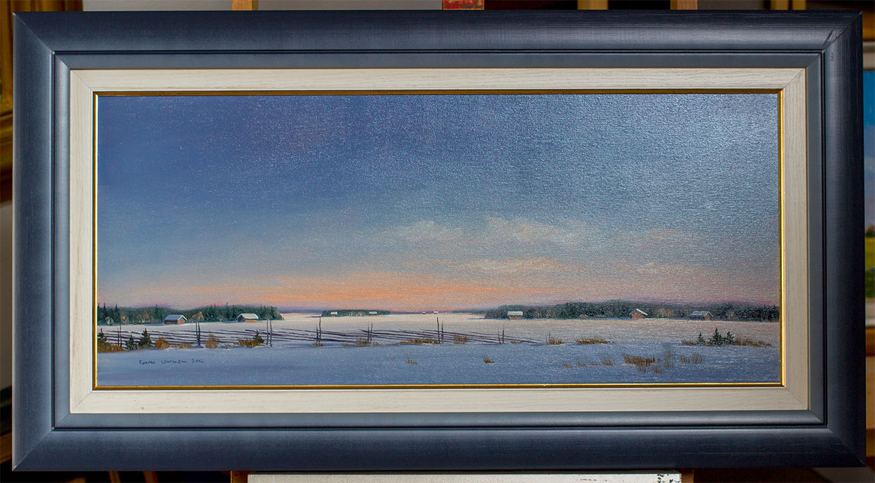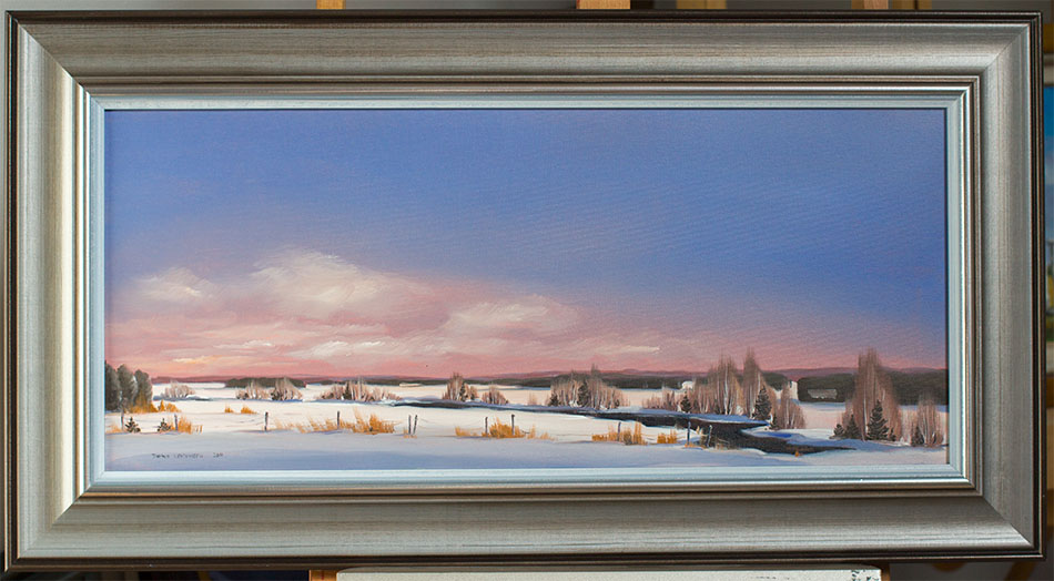 Välitalon peltoja (elokuvasta Härmä). 60x20 öljy, palettiveitsi